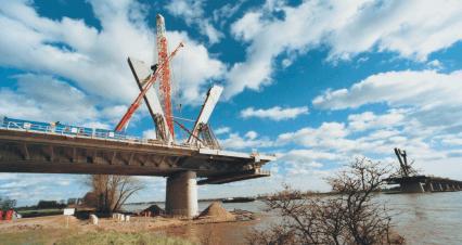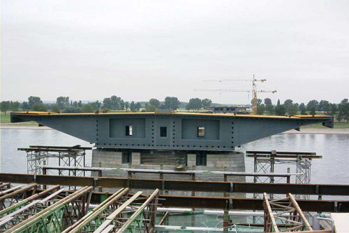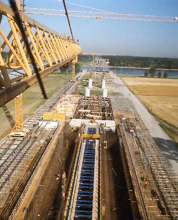den Brückenpfeilern begonnen, auf die dann die Vorlandbrücken aus Spannbeton mit