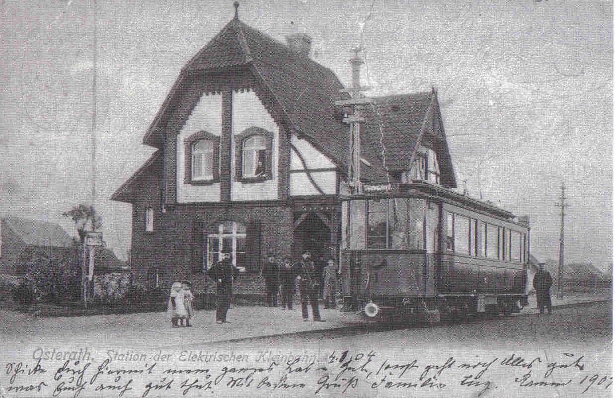 Die Bahnlinie wurde zunächst vom Belsenplatz eingleisig angelegt. Ab 1877 wurde von Osterath aus, die stillgelegt Trasse der damaligen Köln-Crefelder-Eisenbahn benutzt. Diese Strecke wurde damals von Neuss über Osterath nach Krefeld gebaut. Um von vornherein einen Güterverkehr mit der Staatsbahn zu ermöglichen, wurden die Gleise auf der Oberkasseler Seite im Normalprofil der Eisenbahn gebaut. Bei Osterath auf der Görgesheide kreuzte die Bahn mit einer Überführung die Gleise der Staatsbahn und verlief dann auf einem verlassenen Eisenbahnkörper gradlinig bis Krefeld-Dießem. Das Erdreich für die notwendigen Aufschüttungen entnahm man damals aus der unmittelbaren Umgebung. Auf diese Weise entstand die „Zimmermanns Kull“ zwischen dem Ende der Gärten der Kapellenstrasse, dem Hausgarten des Bauernhof Stüttgen, der Bahnlinie und der Strümper Strasse. Die „Lange Kull“ zwischen Schiefelberg und Sportplatz auf der einen Seite und der Bahnlinie auf der anderen. Außerdem entstand so das kleine aber verhältnismäßig tiefe Loch an der Ecke Viehgasse und der Bahnlinie. Zwischen Ende der 30er Jahre bis in die 50er Jahre wurden alle Ausschachtungen mit Hausmüll aus Osterath verfüllt und später überbaut.