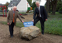 Der Findling erhält keine Informationstafel, so wünscht es sich die Jüdische Gemeinde. Nur auf dem Straßenschild finden sich einige Erläuterungen. "Ich habe auch überhaupt nichts dagegen, dass Kinder auf den Stein steigen und spielen", sagt Rubinstein.